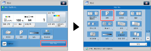 단면]을 사용하는 데 필요한 옵션 제품에 대한 자세한 내용은 "각 기능에 필요한 선택 품목 제품 (imageRUNNER ADVANCE C9280 PRO)" 또는 "각 기능에 필요한 선택 품목 제품 (imageRUNNER ADVANCE C7270/C7260)"을 참고하십시오. |