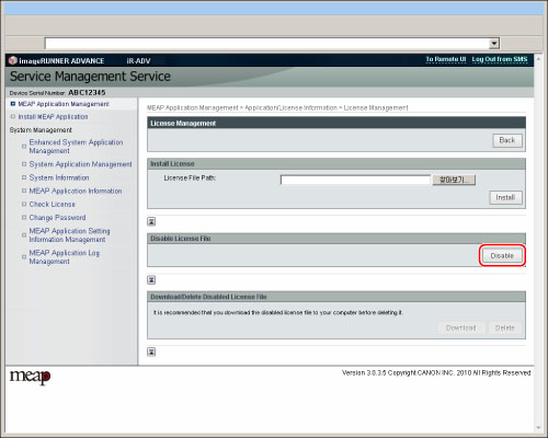 비활성화된 라이선스 파일만 다운로드하거나 삭제할 수 있습니다.