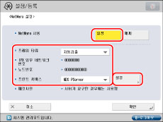 <NetWare 사용>에 대해 [설정]을 누르고 → 다음 항목을 지정하고 → [설정]을 누릅니다.