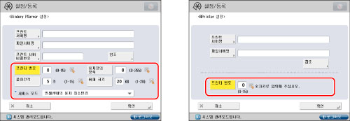 터치 패널 화면의 키보드를 사용하여 Bindery PServer 또는 RPrinter 설정: