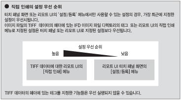 터치 패널 화면 또는 리모트 UI에서만 사용할 수 있는 설정의 경우, 가장 최근에 지정한 설정이 우선시됩니다.