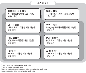UFR II/PCL/PS 설정 메뉴