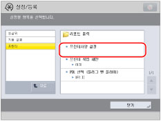 [기능 설정] → [프린터] → [프린터사양 설정]을 누릅니다.