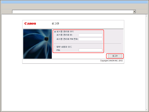 기본 인증 및 부문 ID 관리를 설정한 경우 로그인할 부문 ID와 비밀번호를 입력합니다.