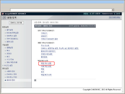 저장된 데이터를 백업/복구하려면 관리자로 로그인해야 합니다.