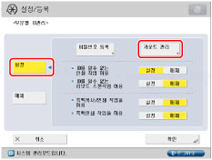 [기능 설정] (설정/등록) - [용지 카세트 자동선택의 설정/해제]의 [기타]에서 '설정'으로 지정된 용지 공급원 중 하나에 A3, B4, A4 또는 A4R(일반, 재생, 컬러 또는 얇은 용지)을 적재한 경우에만 리스트를 인쇄할 수 있습니다. 하지만 [복사]의 [용지종류를 고려함]이 '설정'으로 지정된 경우 컬러 용지가 지정된 급지 위치에서는 인쇄할 수 없습니다.(See "용지 카세트 자동 선택 사용.")