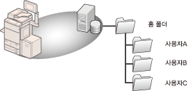 Windows(SMB) 공유 폴더에서 홈 폴더를 설정할 때는 사용자 폴더를 준비할 필요가 없습니다. 로그인 사용자 이름으로 만들어진 폴더를 홈 폴더 아래에 준비하지 못했다면 폴더가 자동으로 생성됩니다.