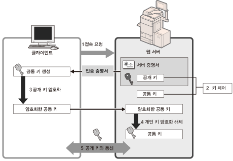 사용자가 컴퓨터에서 기기에 액세스할 때 SSL용 서버 인증서와 서버용 공개 키를 요청합니다.