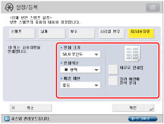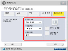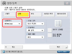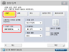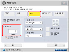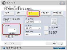 문자 입력에 대해서는 "터치 패널 화면에서 문자 입력."을 참고하십시오. [기능 설정](설정/등록)의 [페이지번호 인쇄/스탬프의 문자열 등록]에 등록된 문자가 있을 경우 리스트에서 문자를 선택할 수 있습니다.