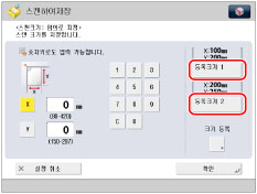 [자동]을 사용하여 감지할 수 없는 원고를 스캔할 때 스캔 크기를 수동으로 지정할 수 있습니다. 지정된 스캔 크기를 등록할 수도 있습니다.