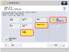 이 모드는 파일을 고급 박스, 네트워크에 다른 imageRUNNER ADVANCE 기기의 고급 박스 또는 메모리 미디어에 저장할 경우에만 사용가능합니다.