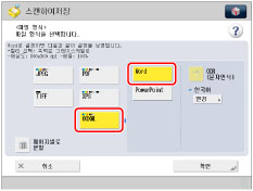 파일 형식을 [OCR (문자인식)]으로 선택한 경우 [1:1 (100%)] 또는 [자동]의 줌 배율로만 문서를 스캔할 수 있습니다.