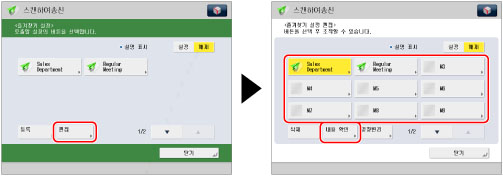 [스캔하여 송신] → [즐겨찾기 설정]을 누릅니다.