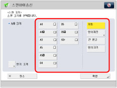 다음과 같은 종류의 원고를 스캔하는 경우에는 [자동]을 선택할 수 없습니다. 원하는 스캔 크기를 선택합니다.