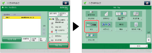 수신인을 지정하고 → [기타 기능]을 누르고 → [농도]를 누릅니다.