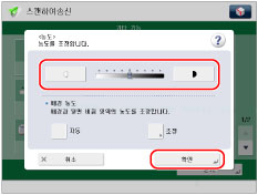 을 눌러 원고의 농도를 조정하고 → [확인] → [닫기]를 누릅니다.