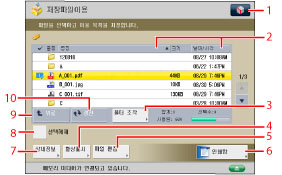 메모리 미디어에 저장된 파일을 삭제합니다. 32개의 파일을 동시에 선택 및 삭제할 수 있습니다.