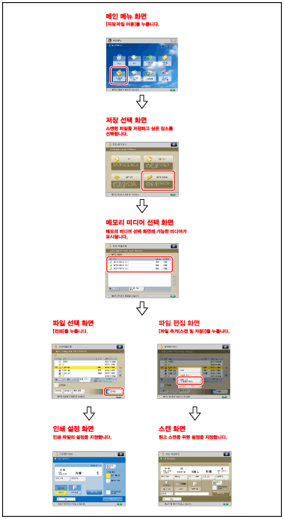 [파일 추가 (스캔하여 저장)]와 관련된 절차 및 스캔 화면 조작에 대한 사항은 "파일 추가(스캔하여 저장)" 및 "스캔 및 저장 조작 순서."를 참고하십시오.