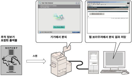 QR 코드는 첫 번째 기입된 QR 코드와 최근 기입된 QR 코드 둘 다에 저장된 정보를 전달합니다. QR 코드의 이 기능에 따라, 인쇄된 QR 코드에 이미 인쇄된 출력물을 복사하고 해당 복사본에 새 QR 코드를 기입하면 Document Scan Lock 모드에 대해 설정된 조건이 이전 조건보다 낮아지지 않습니다. 예를 들어, 최근 Document Scan Lock 정보가 [모두 허가]로 설정된 경우, QR 코드에 기입된 첫 번째 Document Scan Lock 정보가 [모두 금지]이면, 다음 Document Scan Lock 모드에도 [모두 금지]가 적용됩니다.
