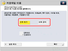 이 기능을 설정하기 전에 관리자는 Document Scan Lock 모드에 QR 코드를 사용하도록 설정해야 합니다. (See "Document Scan Lock(TL 코드/QR 코드)를 위한 코드 선택.")