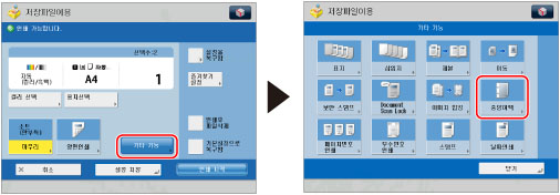 중앙 여백과 양면 인쇄 모드를 함께 사용하여 이미 중앙 여백이 있는 파일을 복사하거나 인쇄하려면 뒷면에 대해서만 중앙 여백 모드를 설정합니다.