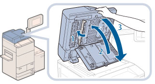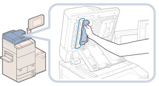 원고대에 흠집이 나지 않도록 문서 스캔 커버를 조심스럽게 여십시오.