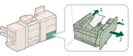 (절전)만 켜짐)인 경우, 급지 장치 유니트가 열리지 않을 수도 있습니다. 이런 경우, (절전)를 눌러 다시 활성화시킨 후 급지 장치 유니트의 열림 버튼을 누르십시오.페이퍼 데크를 강제로 잡아 당기지 마십시오.