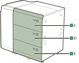 다음 그림은 용지가 걸린 위치를 나타냅니다. 이를 참고하여 걸린 용지를 제거하십시오.