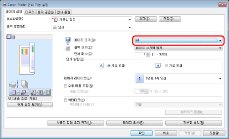 화면은 운영 체제와 프린터 드라이버의 종류 및 버전에 따라 다를 수 있습니다.