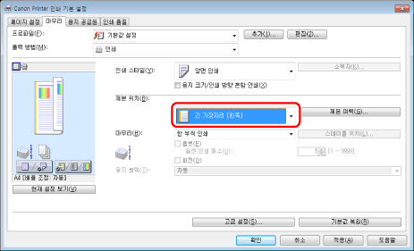 화면은 운영 체제와 프린터 드라이버의 종류 및 버전에 따라 다를 수 있습니다.