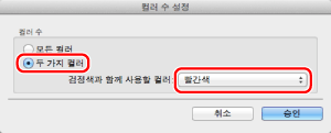 검은색과 사용자가 지정한 다른 색상 하나를 사용하여 인쇄할 수 있습니다. 이 기능은 UFR II 프린터 드라이버에 대해서만 사용할 수 있습니다.