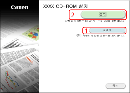 먼저 이 버튼을 클릭하여 Network ScanGear 설치 설명서를 엽니다. 설치를 시작한 후에는 설명서를 볼 수 없습니다.