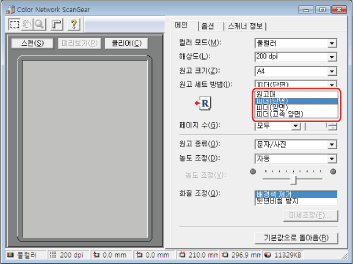 사용 가능한 설정 및 범위는 사용 중인 스캐너 모델에 따라 다릅니다.