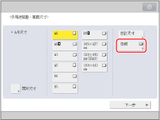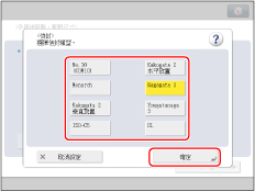 ![]() 若顯示提示調整滑動導板或檢查「設定/註冊」中的[註冊多用途紙盤預設值]的螢幕,請調整滑動導板間的寬度,使之符合儲存在「註冊多用途紙盤預設值」中的紙張尺寸,或者將「設定/註冊」中[參數選擇]中的[註冊多用途紙盤預設值]設定為「關閉」。(請參閱「註冊多用途紙盤預設值」)