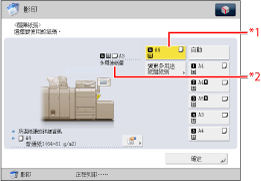 若有多項預約工作等待列印,則在「選擇紙張」螢幕上只顯示最後一次為預約列印工作指定的紙張尺寸/類型。