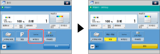 按[預設常用設定]→選擇指定的「常用設定」→按[確定]。