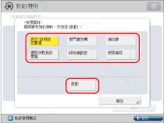 若不同時恢復[設定/註冊設定數值]和[通訊錄]的資料,則可能刪除[設定傳真/網際網路傳真收件匣]和[郵件信箱設定]的[URL傳送設定]中的設定。