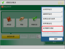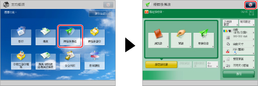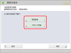 「掃描後傳送」螢幕上顯示兩個選項快速鍵。[雙面原稿]和[不同尺寸原稿]顯示為預設設定。可以將這些快速鍵變更為常用的功能。