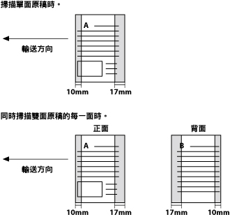 若將原稿放入送稿機時只有如下圖示所示範圍存在彩色部分