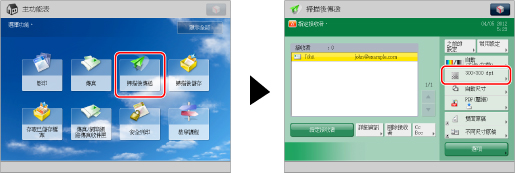 按[掃描後傳送]→指定接收者→按解析度按鈕。