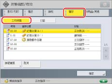列印工作狀態清單。選擇了一項工作時,顯示[列印清單]。按[列印清單]→[是]可以列印清單。
