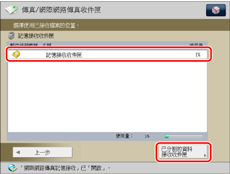 按下可以開啟或關閉「記憶接收收件匣」的「網際網路傳真記憶鎖定」模式。