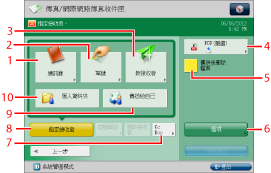 按下[至遠端通訊錄]可以透過網路從用戶端機器存取伺服器機器的單鍵按鈕並指定單鍵按鈕中註冊的接收者。有關詳細資訊,請參閱「從伺服器機器的單鍵按鈕指定接收者」。