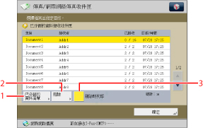 按下可以檢查已分割資料的狀態以及「已分割的資料接收收件匣」的剩餘容量。