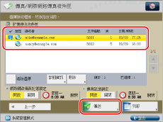 若將[限制新接收者]中的某個位址類型設定為「開啟」,則無法輸入該類型的新接收者。透過使用[通訊錄]中的「本機通訊錄」、「遠端通訊錄」、「LDAP伺服器」或按[單鍵]中的單鍵按鈕選擇已儲存的接收者。(請參閱「限制傳送功能」)