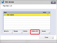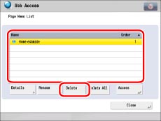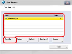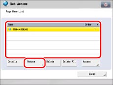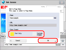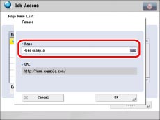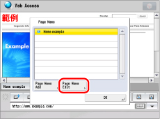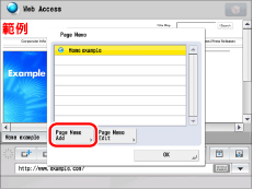 可以變更名稱和URL。若變更了URL,儲存的螢幕內容不會變更。目前顯示的螢幕儲存為「Page Memo」(網頁備忘錄)。
