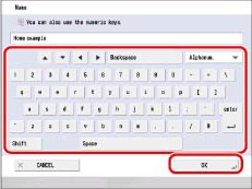 有關輸入字元的說明,請參閱「從觸控面板顯示螢幕輸入字元」。