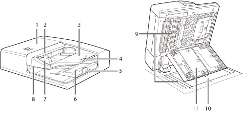 開啟該蓋板取出夾紙。(請參閱「雙面自動送稿機-F1(選購)」)