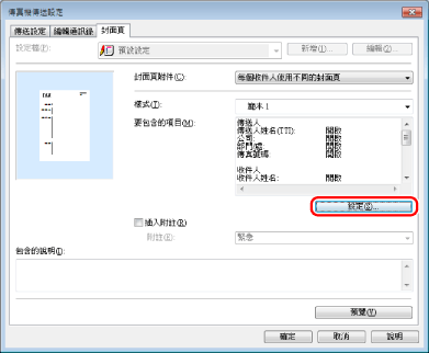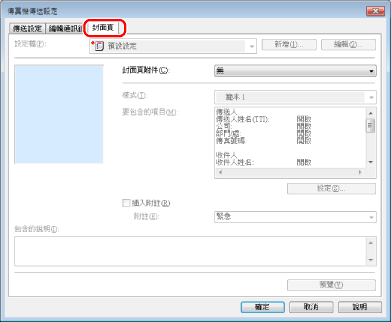 在[傳送設定]標籤中所指定的目的地資訊列印在封面頁中。