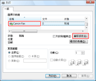 從[名稱]選擇所需傳真機→按一下[善好設定]。